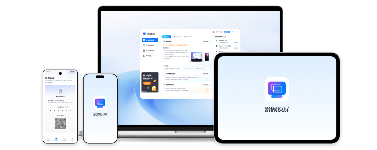 爱思投屏支持 iOS、Android 设备投屏至电脑,电脑、Android 设备投屏至 Android 设备
